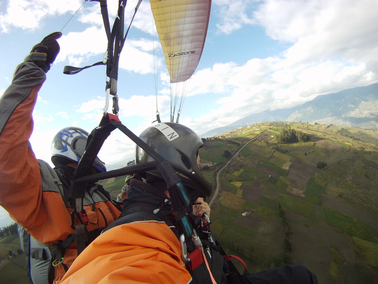 We could see for miles and miles and we could even catch our first glimpse of the volcano that has been hiding behind the clouds ever since we arrived in Baños...The pilot took each one of us up for about 20 mins, Lynz got a bit longer of a ride because the wind died and the pilot could not safely get her back to where she took off from so he floated around for a while looking for a safe place to land, but I guess that's pretty normal.