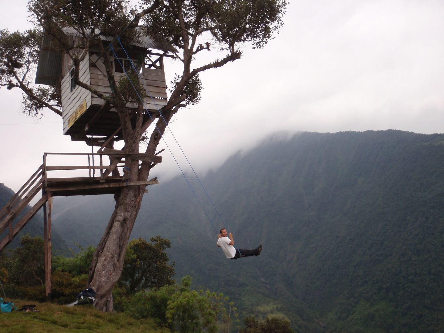 We took a few mins to swing out on the swing that goes over the valley and then headed to the only restaurant built into the cliffs overlooking Baños.