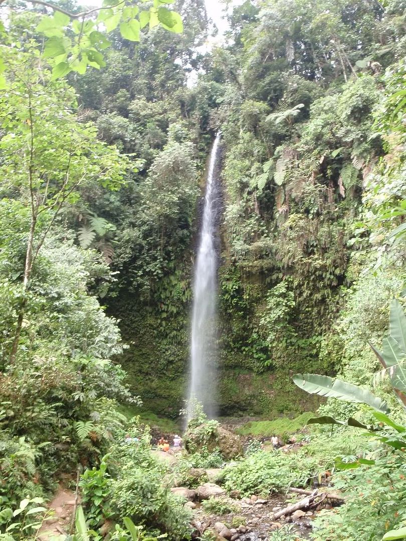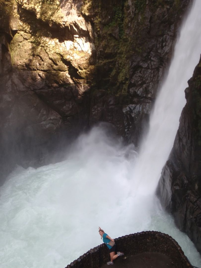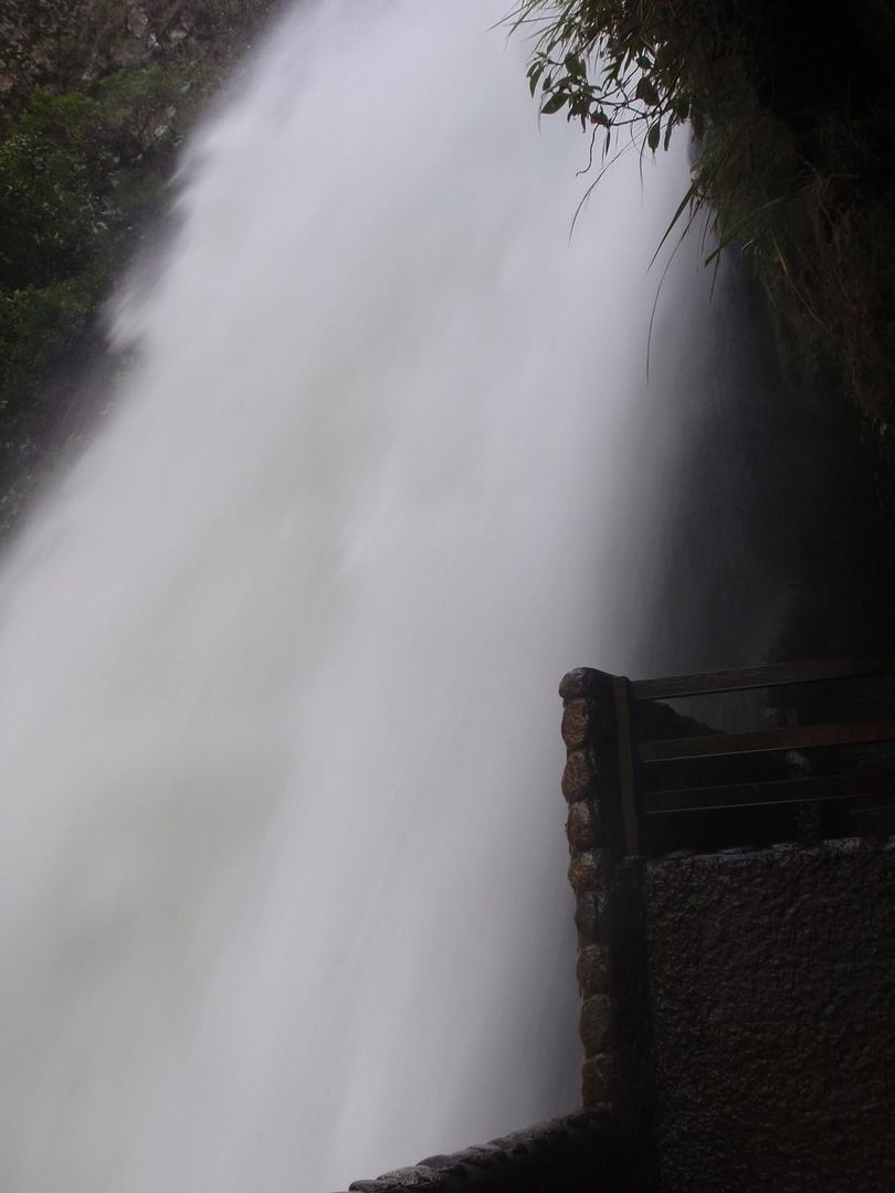 But looking closer we could see people standing right next to the falls, and they looked like ants! We quickly realized we had underestimated the size of the falls, and we were just farther away then we thought. We found our way to a trail that took you right up next to the falls where some CRAZY Ecuadorians had constructed a series of look out points below, next to, above and BEHIND the falls. Now that we were spitting distance from the falls we understood where the falls got its name, there is no way someone could survive the pools below the falls, there were literally millions of gallons of water coming over the edge of the falls every minute.
