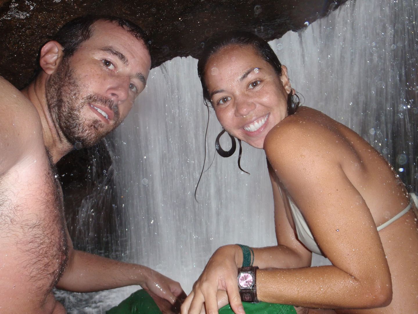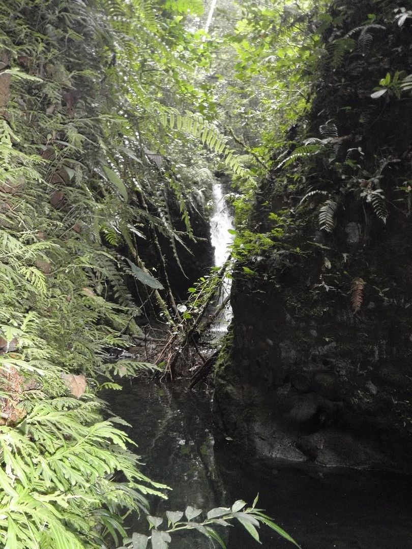 The waterfall had been splashing into the pond for so many thousands of years that a pretty big cave had been carved out behind the falls, so you could actually stand behind the sheets of water, it was incredible.