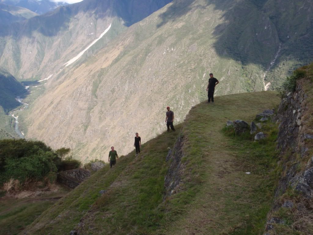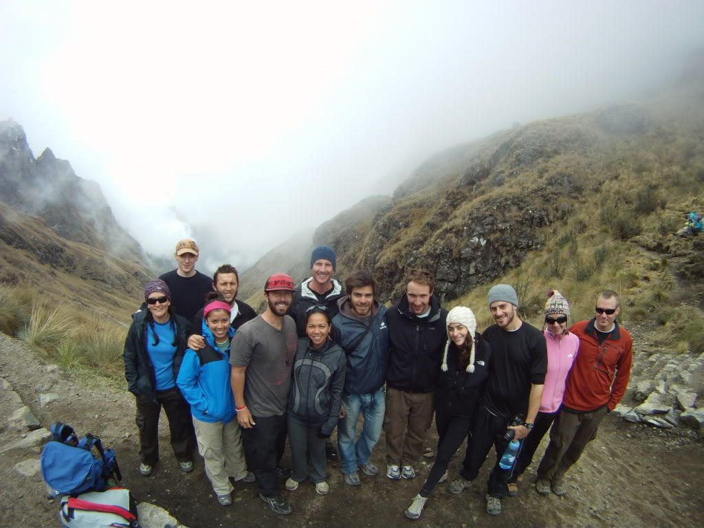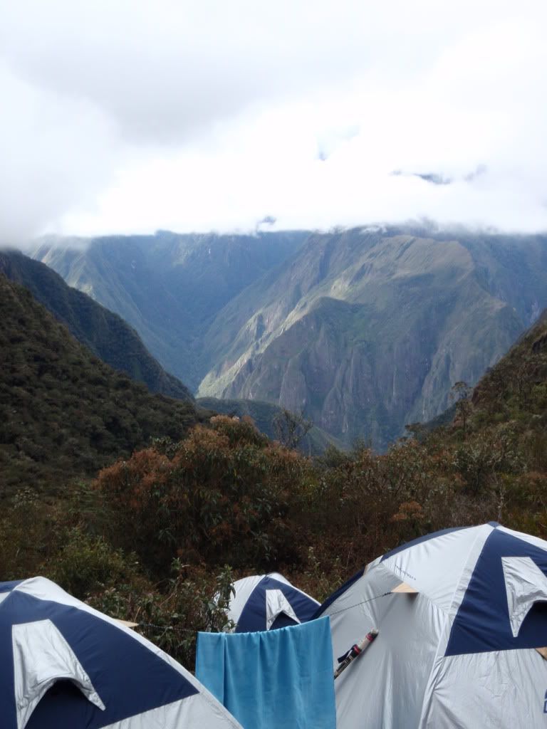 So Lynz did pick a great time to let me take over the blog because her version and my version of day two are drastically different....about 30 pounds different!! At 6 in the morning, local farmers come to our camp and ask if they can carry your pack up the mountain all the way to the second camp about nine miles away. As you can tell, Lynz took them up on this offer and Jono and I did not! This up hill stretch probably took us somewhere in the neighborhood of 5 hours and several thousand stairs. These of course are not your average stairs ether, these are Inca stairs, all different sizes, heights, shapes and whatnot. This makes for 5 hours of hiking without looking up from where your next step is going to be so surprisingly one of the body parts that was most sore the next day was my neck! One of the things that really kept me going during this grueling climb in very thin air was thinking about the people that built these steps on the trail hundreds of years ago with no modern tools or anything. It defintely made me feel like I was being a wuss for complaining about just walking on it, when these people not only had to Carry all of these rocks, but they had to shave them flat and fit them together into perfect puzzle pieces!
