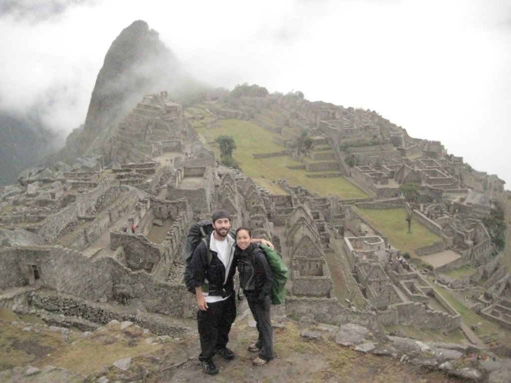 When 530 finally rolled around we pretty much sprinted down the final two and a half hours of trail in the pouring rain. We were cold, wet and in some pretty sour moods because we knew if it was raining this hard we would not be able to see a thing when we arrived at Machu Picchu. The final stretch of the trail the rain started to let up and as we looked ahead we could begin to see the ruins peaking through the clouds. We arrived at the area where you see that typical ¨Machu Picchu¨ photo taken from and began to snap away.