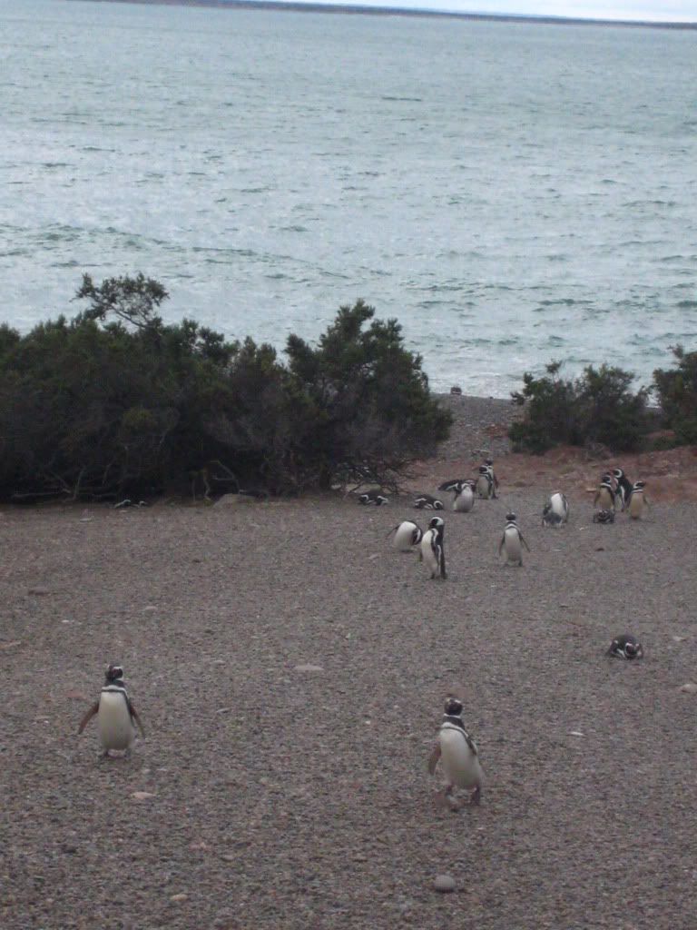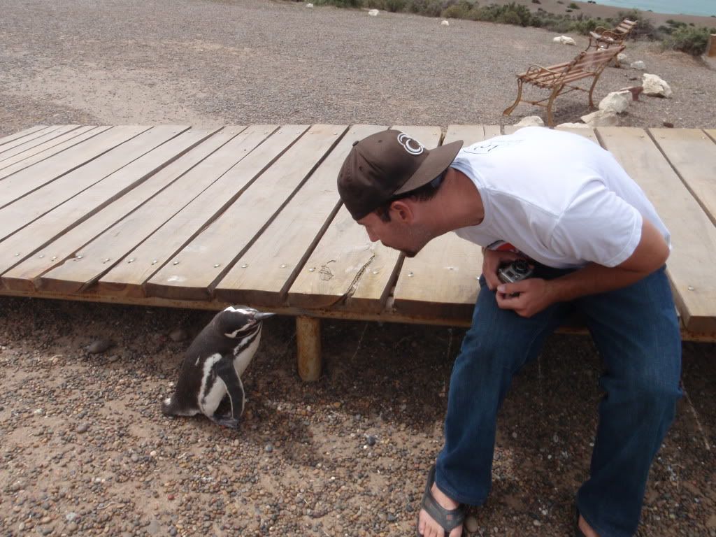 So here goes, lets see what I can remember from way back then haha...After leaving the lake district of Baraloche in Argentina we hopped on a bus and went clear across the country to a port town on the Atlantic ocean called Puerto Madryn. We decided to go there because Puerto Madryn is known to have spectacular views and close encounters with its marine life, so we figured the seafood might not be bad ether...we were wrong. So after a disappointing and over priced shrimp and calamari dinner we looked into what sort of activities we should do in our short two days we had there. We decided upon a do it yourself tour where we would once again rent a car and just show ourselves around. The next morning we took off bright and early to a sanctuary for Penguins and other wildlife. After we parked the car and paid some outrageous entrance fee, we came upon a lone penguin that we photographed about 50 times before moving on and walking over the next hill where of course there were another 25698075865223452 penguins waddling all over the place...some people never learn!